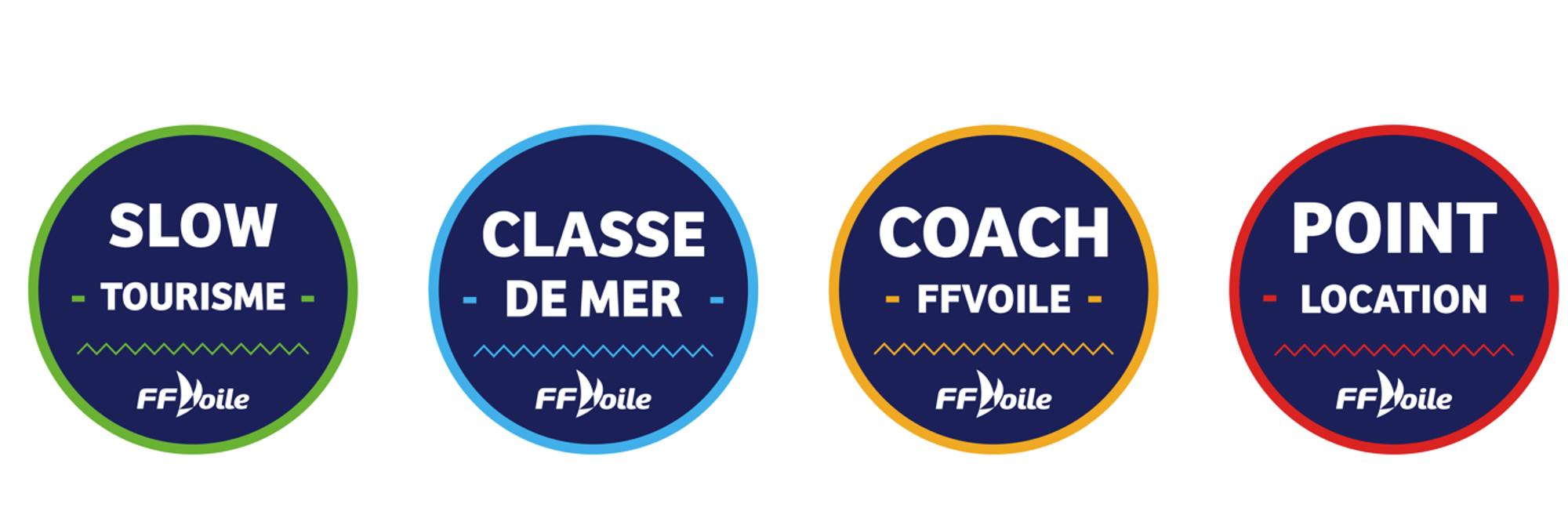 Les 4 référentiels de marques permettent à chaque structure d'identifier le domaine d'activité et les engagements liés à chacune des marques. En contrepartie de la cotisation à la marque, la FFVoile s'engage à animer le réseau des porteurs de la marque et à proposer des services associés attendus par le réseau.